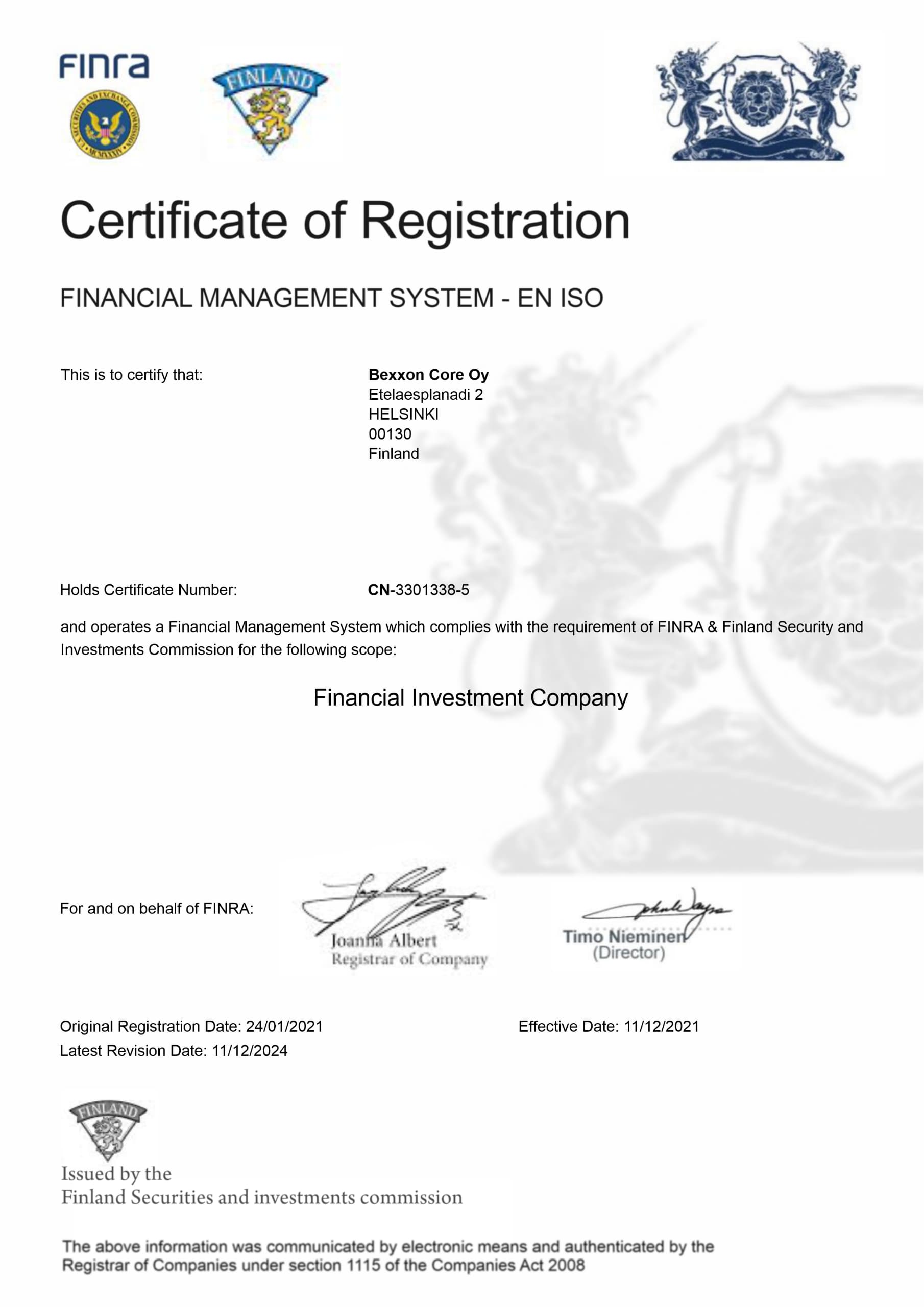 headquartered in Finland, Bexxon Core have staffs with over 10 years’ experience in